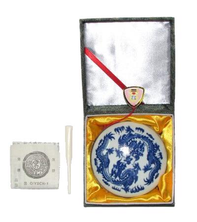 A porcelain container filled with premium quality red Chinese seal ink. This is a professional artist grade Chinese seal ink paste.